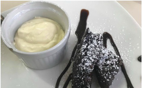 | CHOCOLATE BROWNIE WITH CREAM (Icing Sugar) |